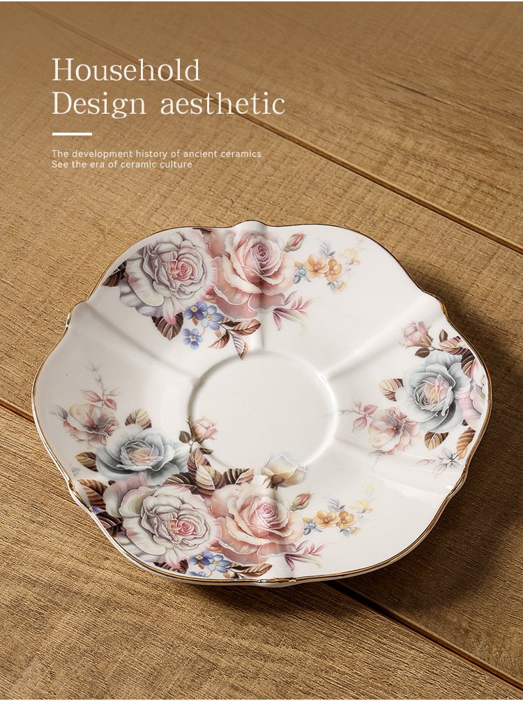 European-Style Delicate Floral Coffee Cup and Saucer Western Vintage Gold-Painted Ceramic Mug Premium-Quality Household Tea Cup and Water Glass